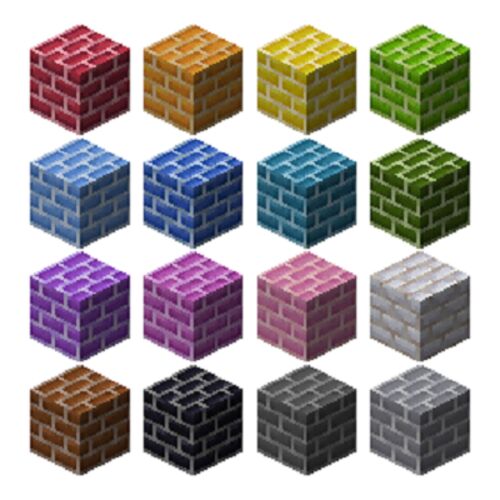 16種類の色がついたレンガブロック,コンクリートブロック,テラコッタブロック,植木鉢を追加するMOD